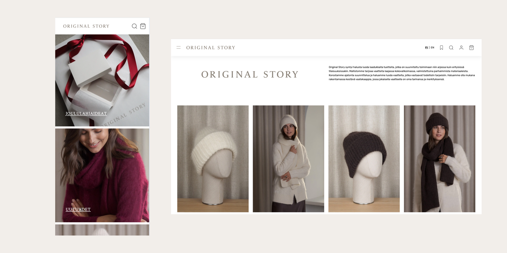 Original Story is a Finnish brand that combines craftsmanship, modern design, and sustainability. When the brand needed a platform that could meet the demands of its unique identity and diverse customer base, we at Brancoy stepped in to help. We built a completely new online store for Original Story on the Shopify platform, seamlessly integrating both D2C (Direct-to-Consumer) and B2B (Business-to-Business) functionalities. The new e-commerce site not only supports sales goals but also strengthens the brand's narrative of a unique fashion experience, both in domestic and international markets.